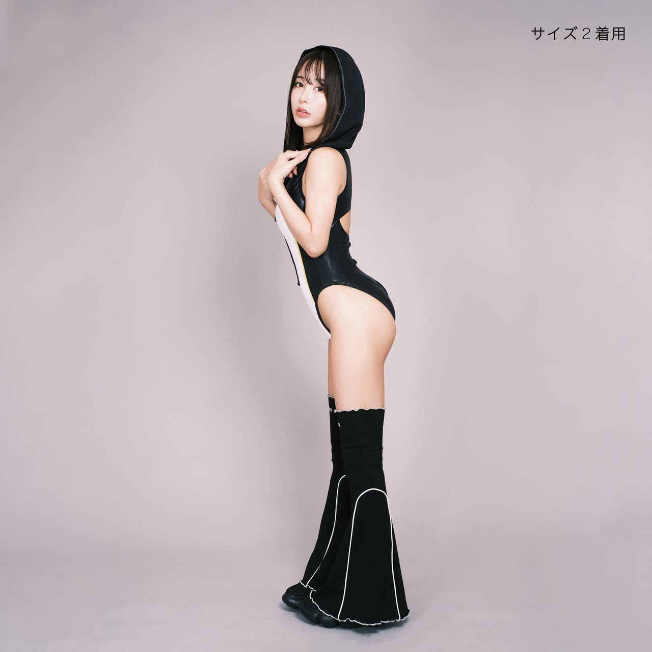 水着の黒色部分は光沢のある素材になります。